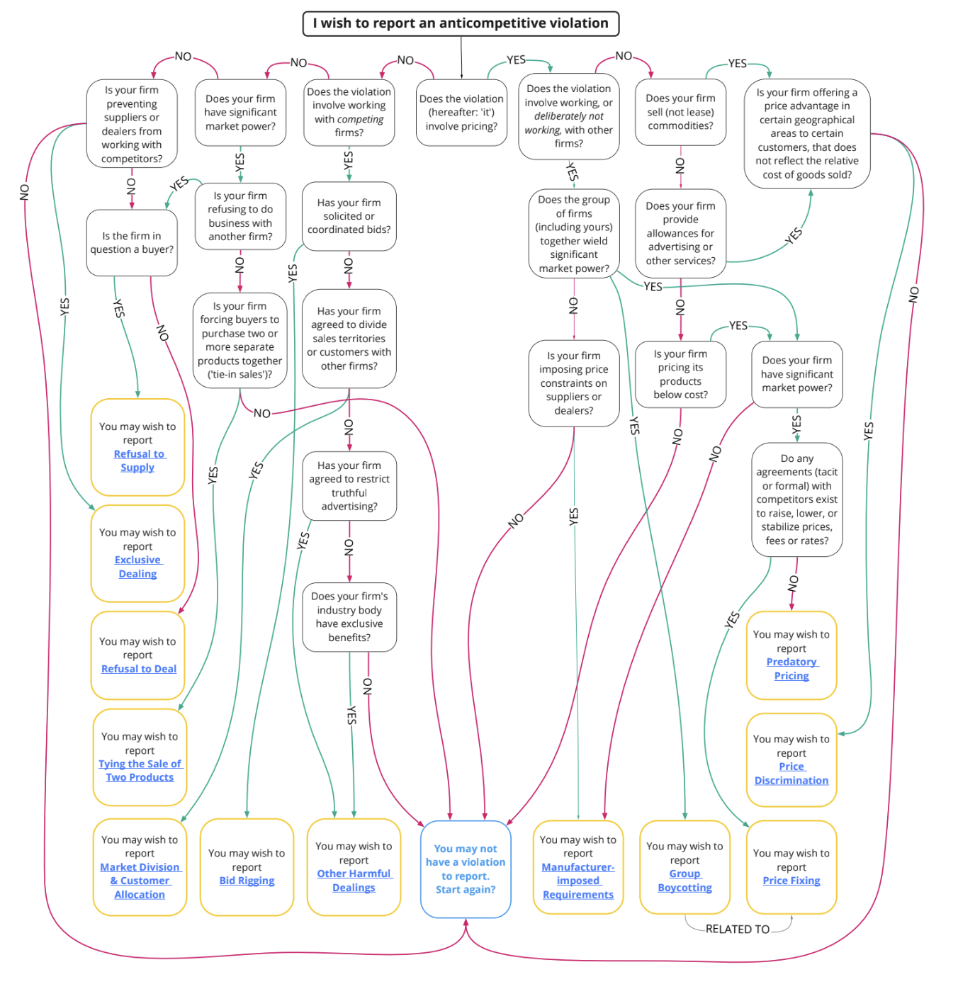 - Educate whistleblowers on what constitutes an antitrust violation, while simultaneously narrowing down the category of each violation;